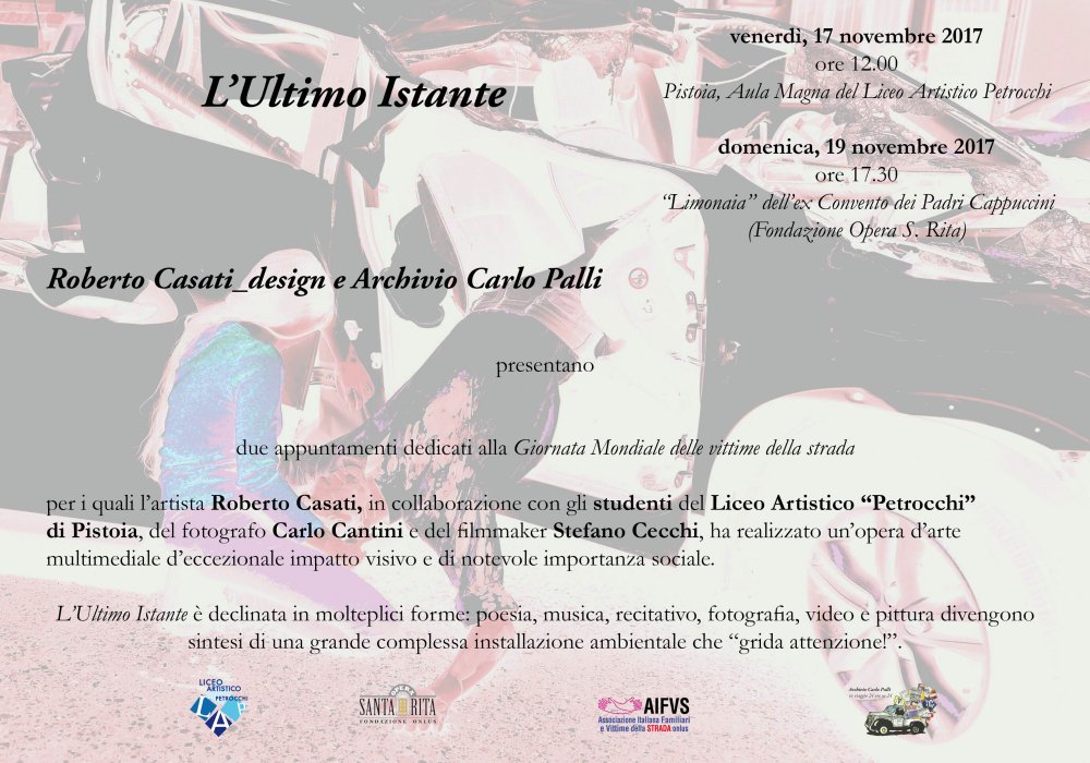 L'Ultimo Istante L'ultimo Istante è declinata in molteplici forme: poesia, musica, recitativo, fotografia,video e pittura divengono sintesi di una grande complessa installazione ambientale che "grida attenzione!"  |