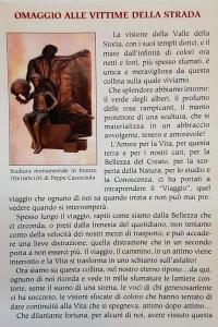 La realizzazione dell’opera è stata promossa dall’associazione italiana “Familiari e vittime della strada A.P.S.” con la referente locale Carmelina Nobile. Il monumento è stato creato dall’artista Giuseppe Cacocciola grazie al contributo dell’associazione, di enti pubblici e con donazioni di privati cittadini.